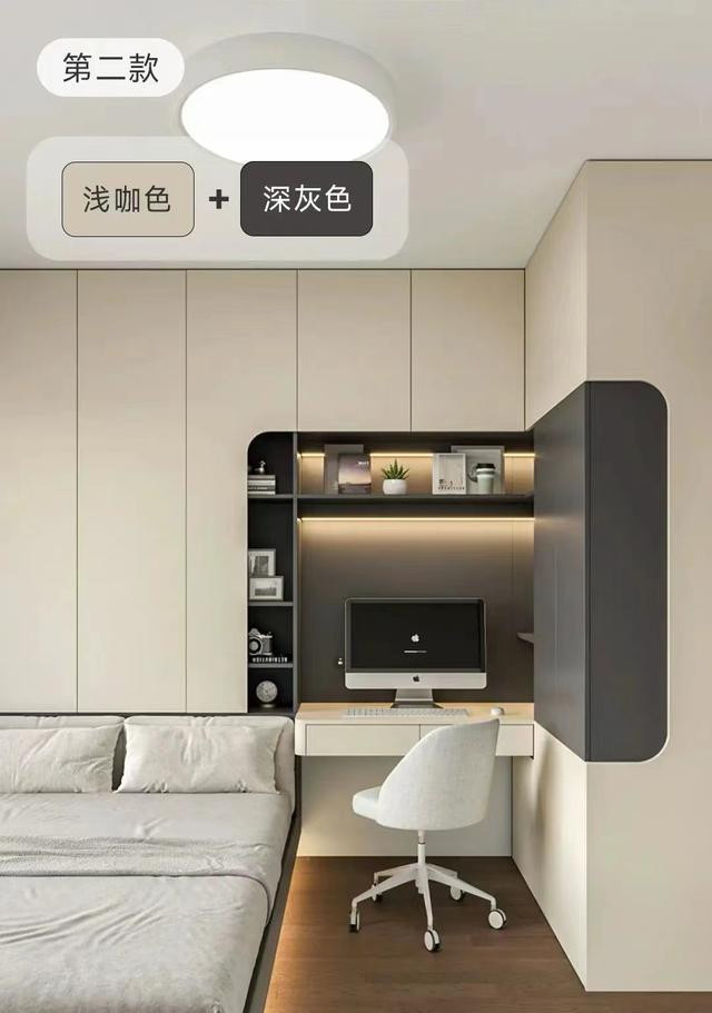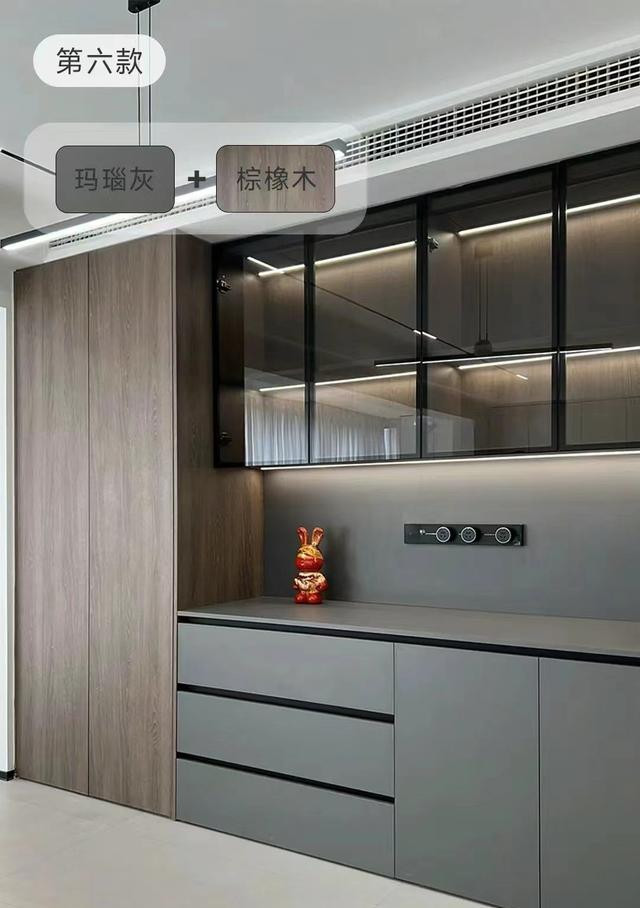 浅咖+深灰=打工东说念主回血站把深灰用在金属踢脚线和雪柜门上,浅咖作念主色,放工一开门像钻进咖啡胶囊。哑光肤感柜门别作念亮面,指纹集合器谁用谁崩溃。留1%预算给灯带,3000K暖光打下来,出租屋秒变样板间。