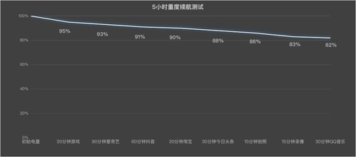 其次,一加Ace6T配备了高达8300mAh的超大容量电板,这如斯宏大的电板容量,使得即便在高强度使用场景下,手机也能节略复旧更久。咱们遴荐ZOL五小时重度续航测试模子对其进行了万古期的不雅影、拍摄、游戏、刷信息流等操作,测试扫尾后剩余电量定格在82%,时时使用敷裕不充电用一天。