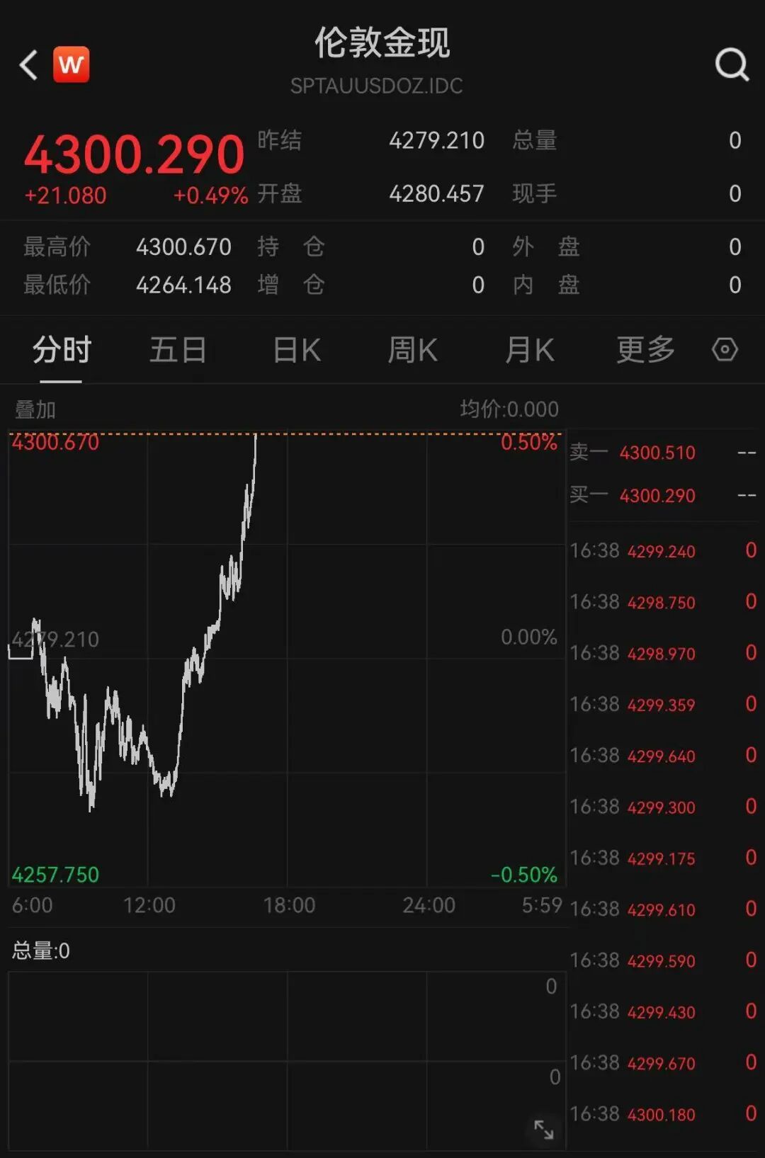 发布日期:2025-12-17 14:38 点击次数:199北京手艺12日,现货黄金(伦敦金现)下昼强势拉涨,盘中打破4300好意思元,刷新50天新高。适度发稿,报4300.290好意思元/盎司,涨0.49%,COMEX黄金期货同步上升,报4323.2好意思元/盎司。